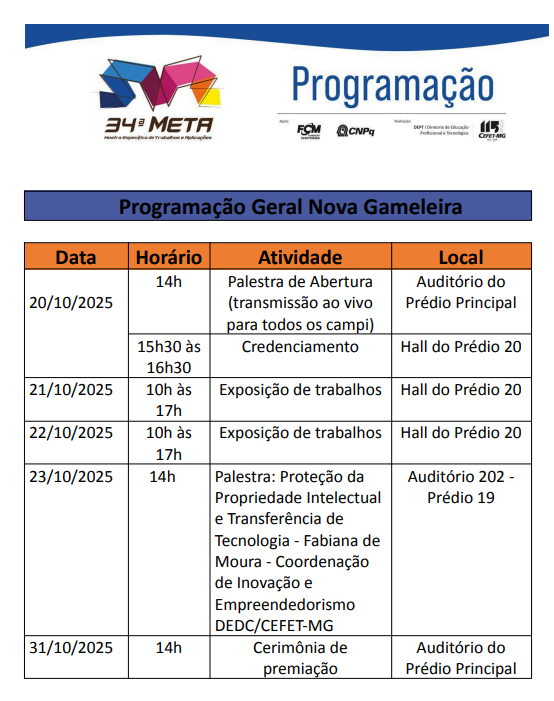 Confira a programação completa no site da META: https://www.meta.cefetmg.br/programacoes/