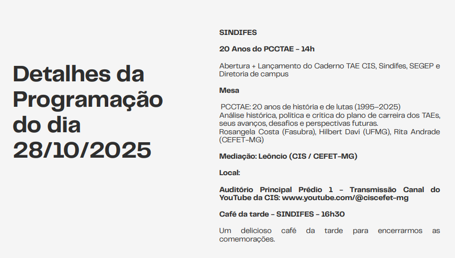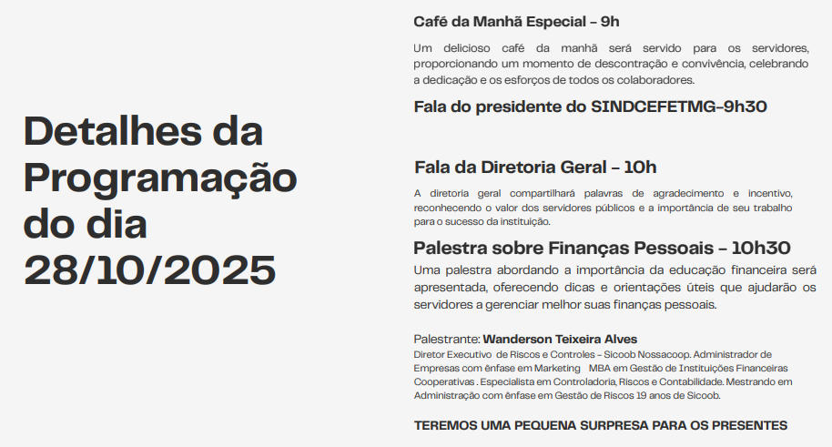 Programação – Celebração do Dia do Servidor Público – Campus Nova Gameleira