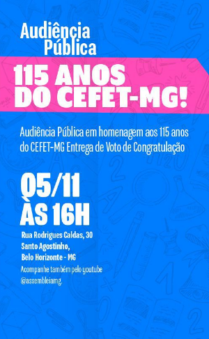 Debater a relevância do Centro Federal de Educação Tecnológica de Minas Gerais – CEFET-MG – e proceder à entrega de voto de congratulações com o referido centro pelos 115 anos de sua fundação.